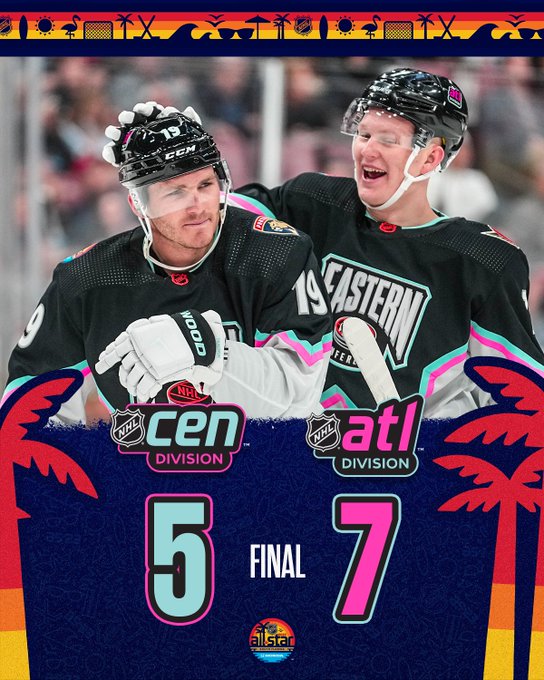 The 2023 NHL All-Star Game ended with the Atlantic Division as the champion, securing a 7-5 win over the Central Division in front of a jam-packed audience of 19,250 at FLA Live Arena in Sunrise, Florida.